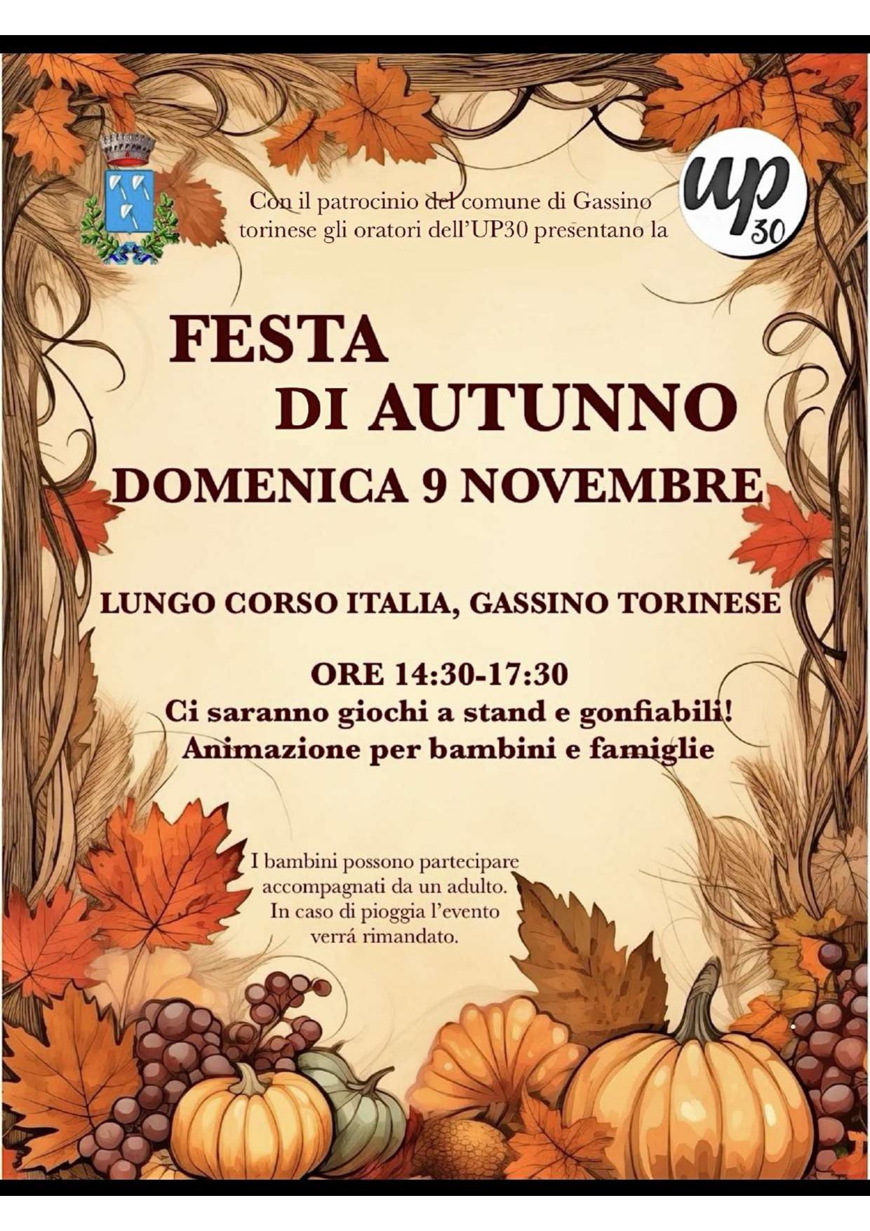 Domenica 9 novembre il centro di Gassino Torinese si anima con la Festa d’Autunno, un pomeriggio dedicato alle famiglie, ai bambini e alla voglia di stare insieme.